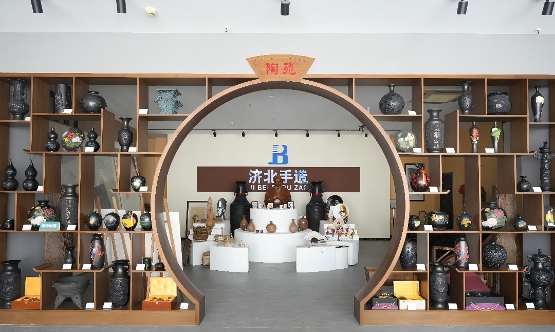 作為濟陽區(qū)非遺文化的重要展示窗口,展廳始終以傳統(tǒng)技藝類產(chǎn)品為核心支柱。升級后,黑陶的古樸厚重、老粗布的經(jīng)緯溫情、木作的匠心巧思、剪紙的靈動鮮活、柳編的自然質(zhì)樸,以及黃河五彩陶、刻瓷、烙畫、彩塑等十余項代表性非遺手造產(chǎn)品依舊悉數(shù)亮相,每一件作品都承載著當(dāng)?shù)亟橙藬?shù)十年的技藝沉淀,全方位呈現(xiàn)了非遺文化的深厚底蘊與獨特魅力,讓觀眾在參觀中直觀感受傳統(tǒng)手造的文化溫度。