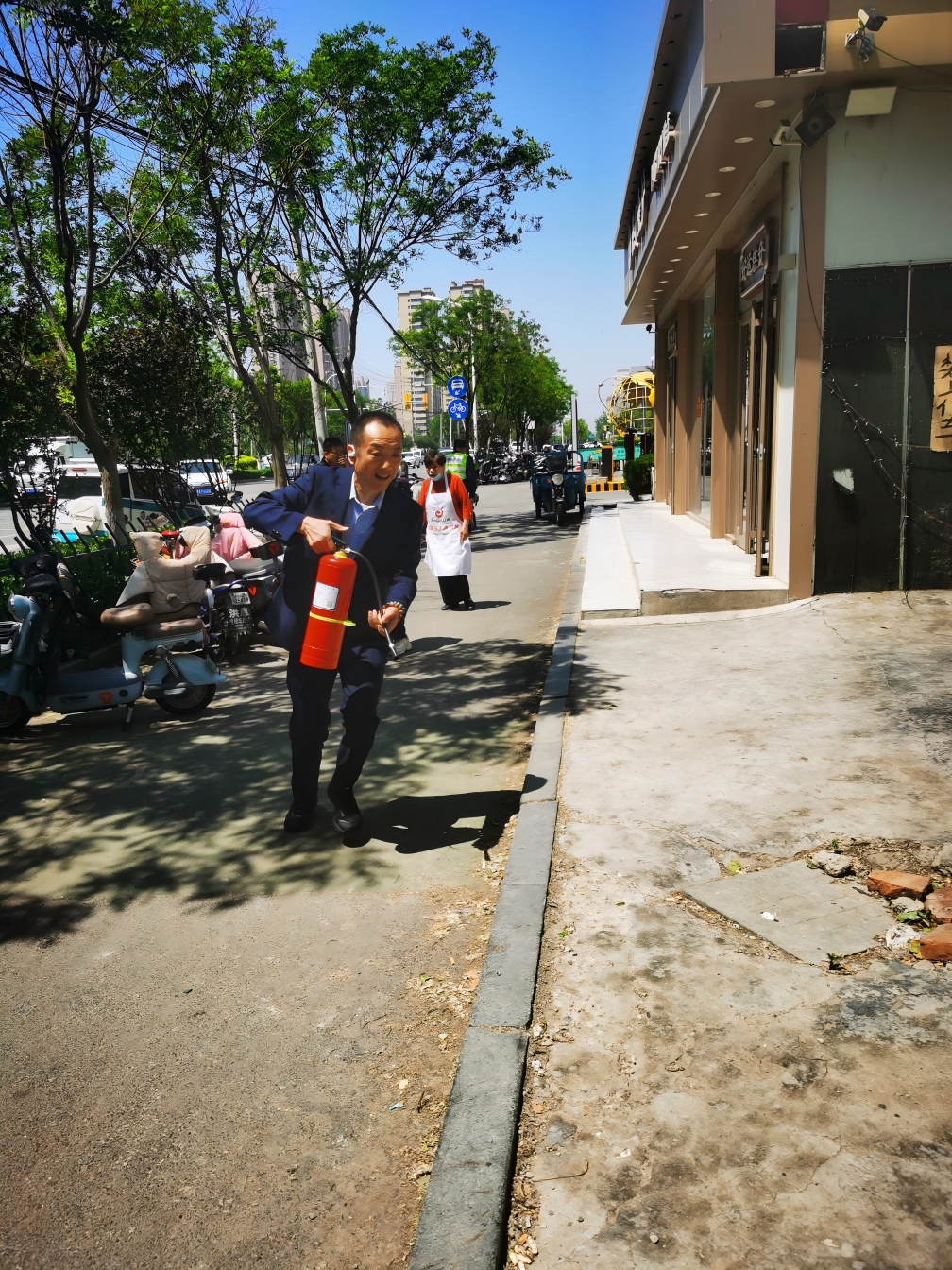 正如近期發(fā)生的一起火情,體現(xiàn)了長田物業(yè)人的臨危不亂與高效協(xié)作。5月11日,華百廣場東側(cè)一燒烤店鋪突發(fā)火情!店主驚慌失措,向華百廣場執(zhí)勤安保人員求助,安保人員馬上通過對講機通報火情。安保主管高君接到指令后,臨危不亂,立即啟動應急預案,協(xié)調(diào)人員前往救火并報火警。到達現(xiàn)場后,發(fā)現(xiàn)涉事店鋪濃煙滾滾,且有火勢蔓延的趨勢。高君以及其他物業(yè)人員沒有絲毫退縮,第一時間全力投入到滅火作業(yè)中。從拔掉滅火器保險銷,到對準火焰根部噴射,整個動作一氣呵成,規(guī)范嫻熟,干凈利落,精準地控制了起火點,抑制了火勢進一步擴大。與此同時,其他幾名隊員迅速行動起來,在現(xiàn)場周圍拉起警戒線,維持現(xiàn)場秩序,并通過大聲呼喊等方式通知附近的商戶遠離現(xiàn)場,提醒他們注意安全,避免發(fā)生意外。